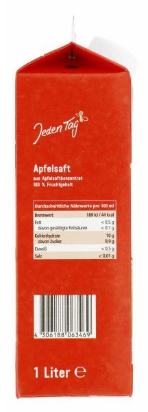 Apfelsaft aus Apfelsaftkonzentrat, 100% Fruchtgehalt.